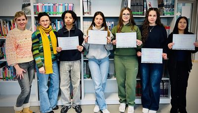 Besondere Anerkennung gelten daher Ecrin, Imad, Leni und Elena aus dem Jahrgang 11, die nun auch das Niveau B1 erfolgreich abgeschlossen haben.